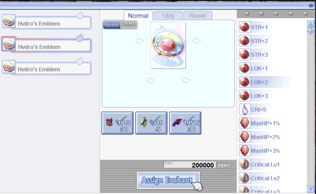 The miscellaneous items used to enhance Emblem options depend on the type of pet.