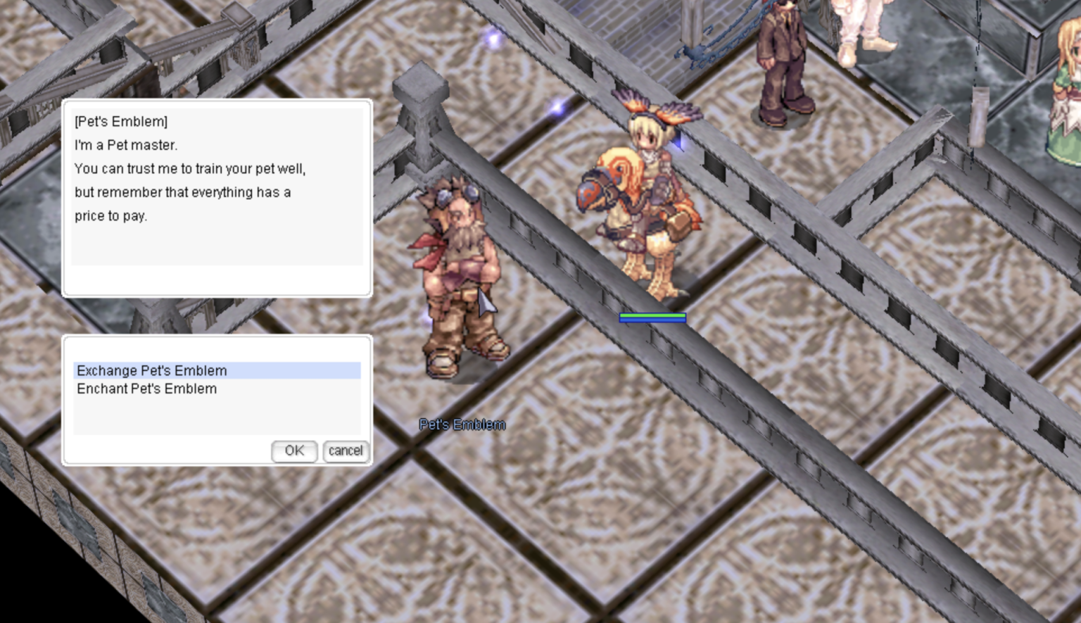 You can get Pet Emblem by Talk to the Pet Evolution NPC and select “Exchange Pet Emblem”.