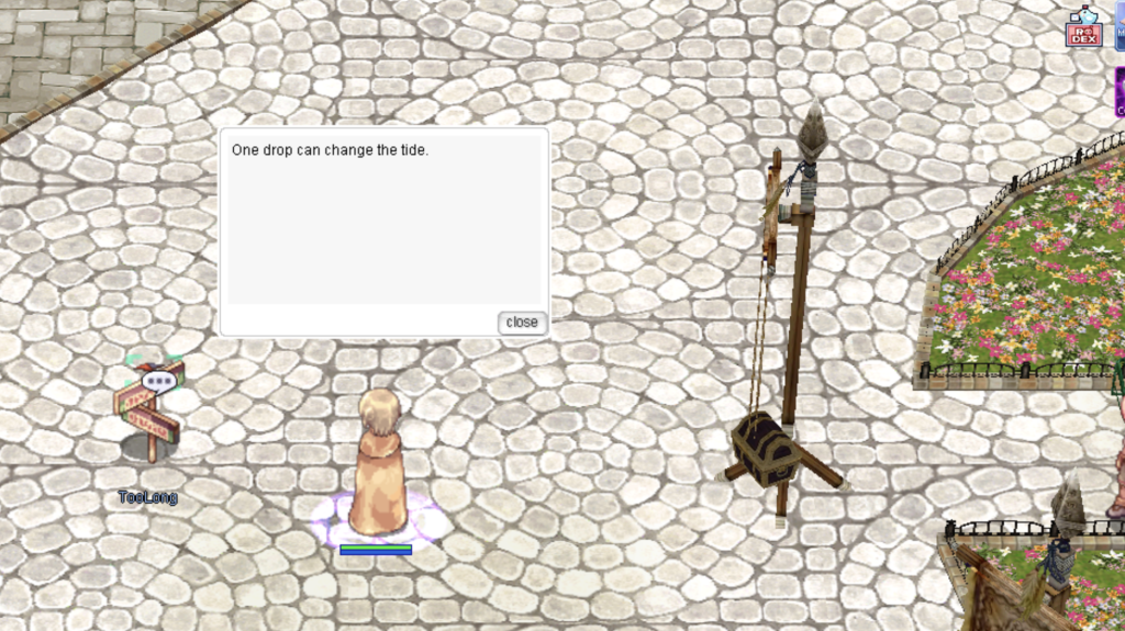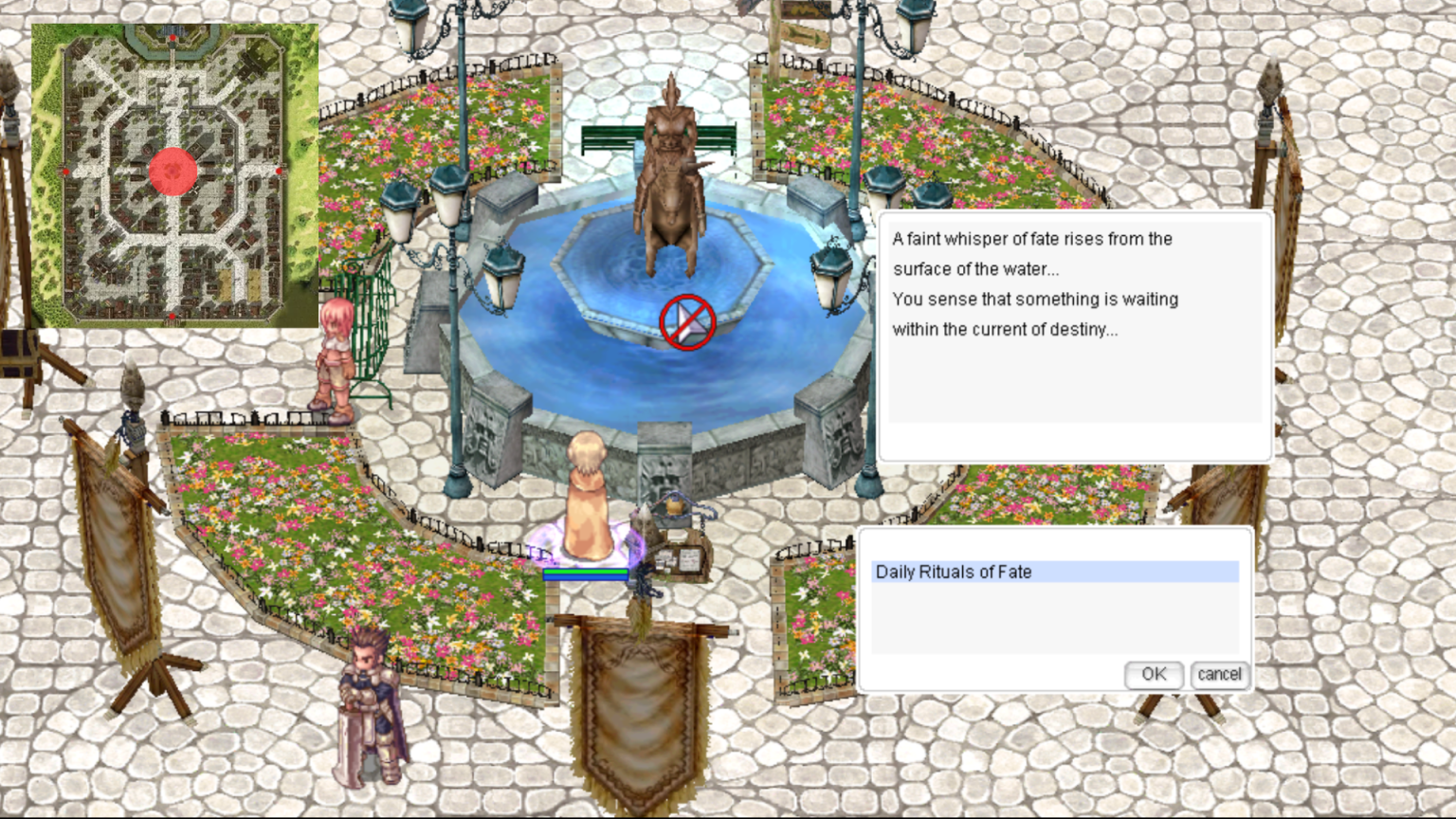* **Objective**: Accept the quest and stand near the Prontera Fountain for 10 minutes.
