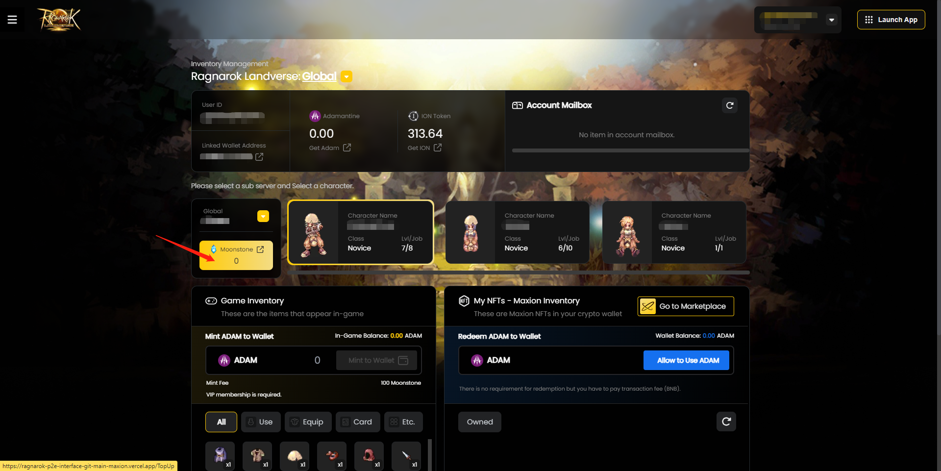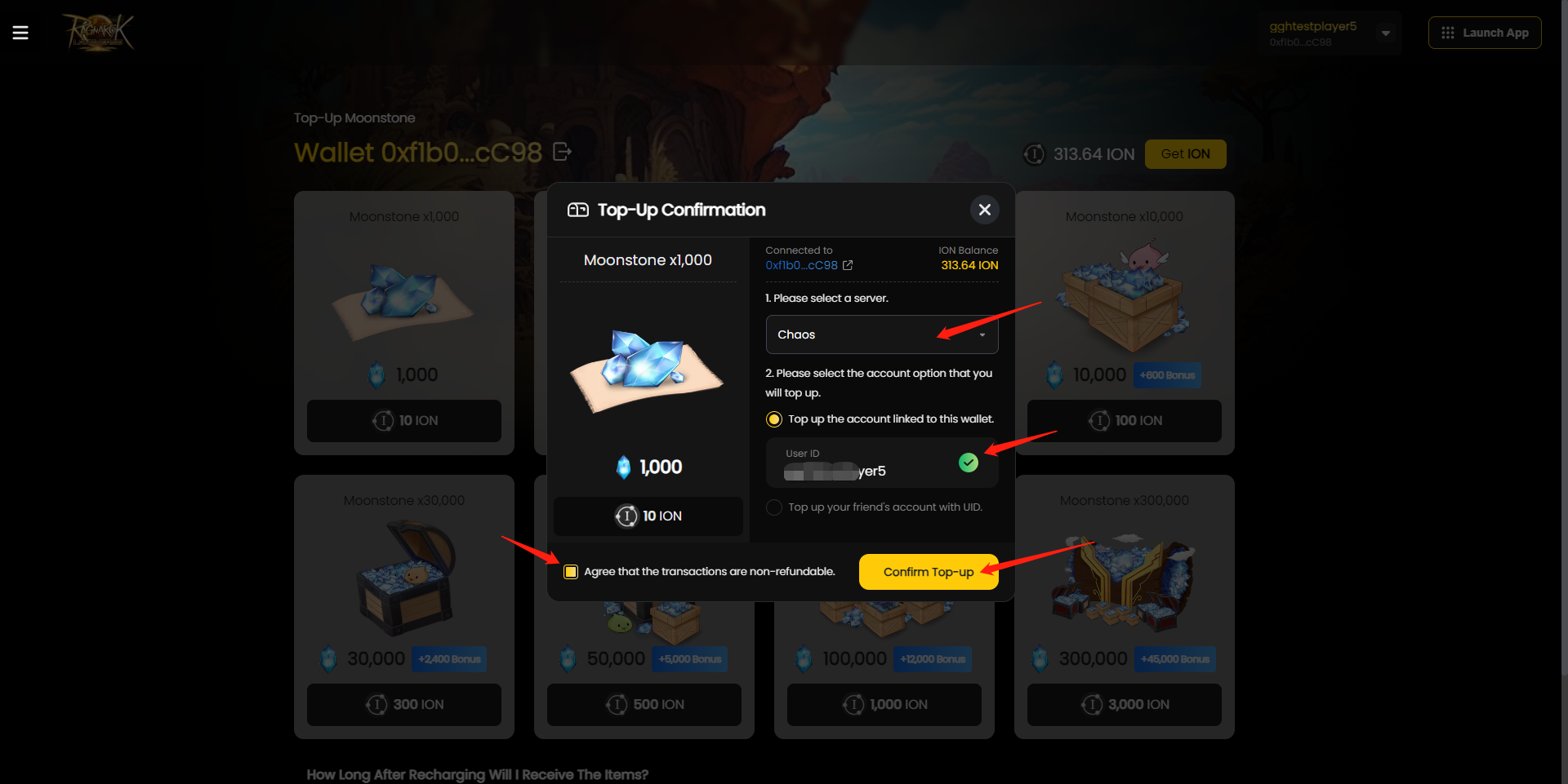 8. As Moonstones compradas serão mostradas na conta do jogo e sincronizadas automaticamente com a conta do jogo dos jogadores. As Moonstones compradas estarão disponíveis para todos os personagens criados na conta do jogo.