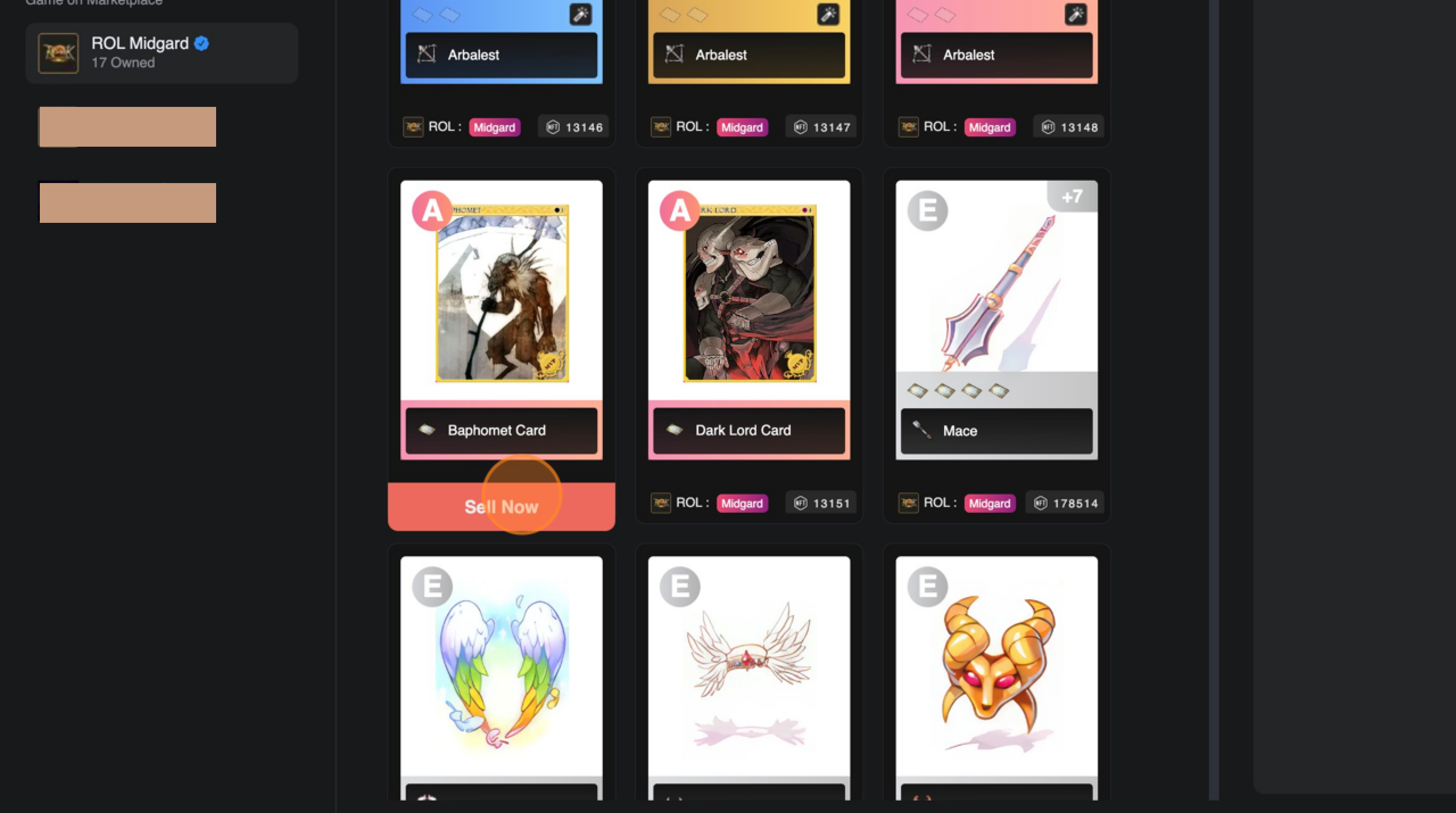 * Depois de encontrar o item que deseja vender, clique em \[Sell Now] para iniciar a listagem.