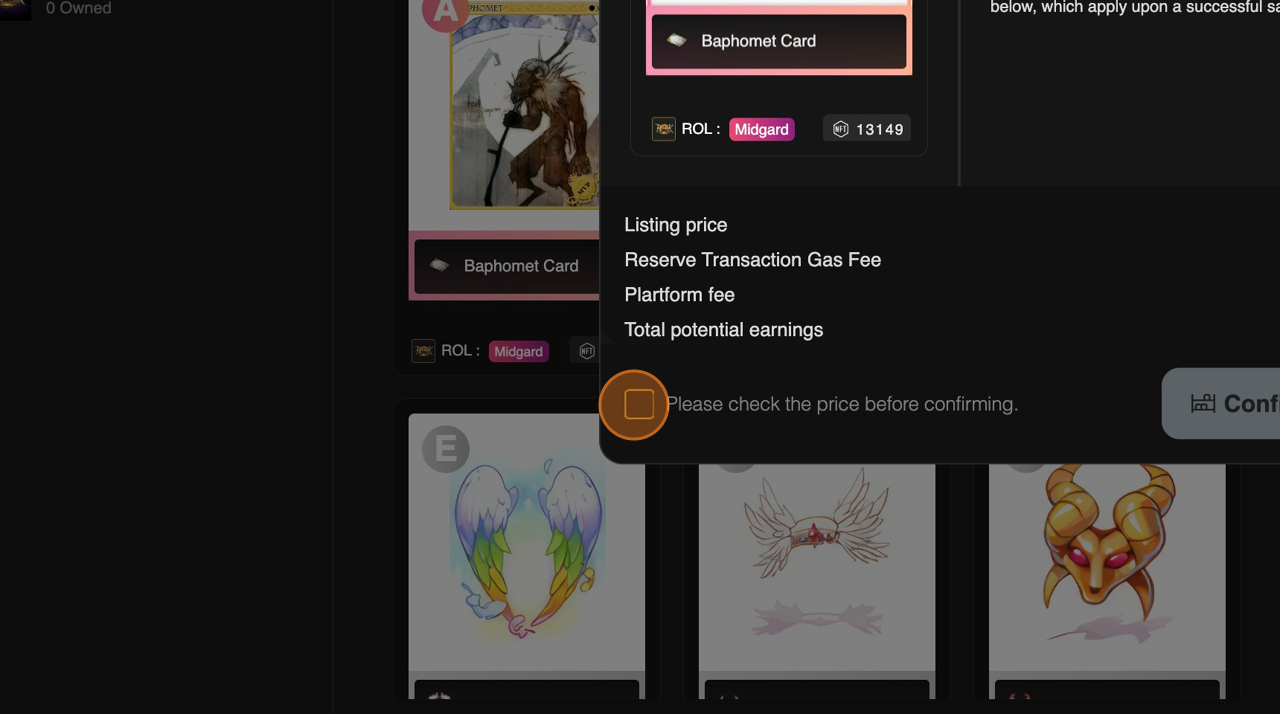 * Clique em \[Confirm Listing] para listar seu item no Marketplace.