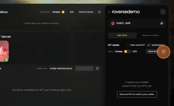 * En caso de que no veas el NFT, haz clic en el botón "refresh" para actualizar y recuperarlo nuevamente desde tu billetera.