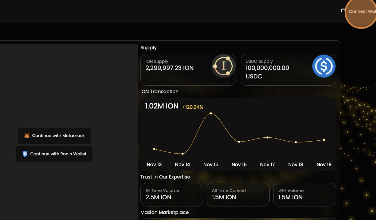 * Visit <https://ion.maxion.gg/> and click "Connect Wallet".