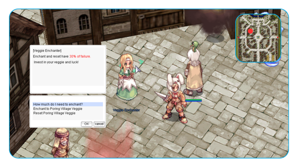NPC: Veggie Enchanter Location: Prontera (96, 251) Success Rate: 70%