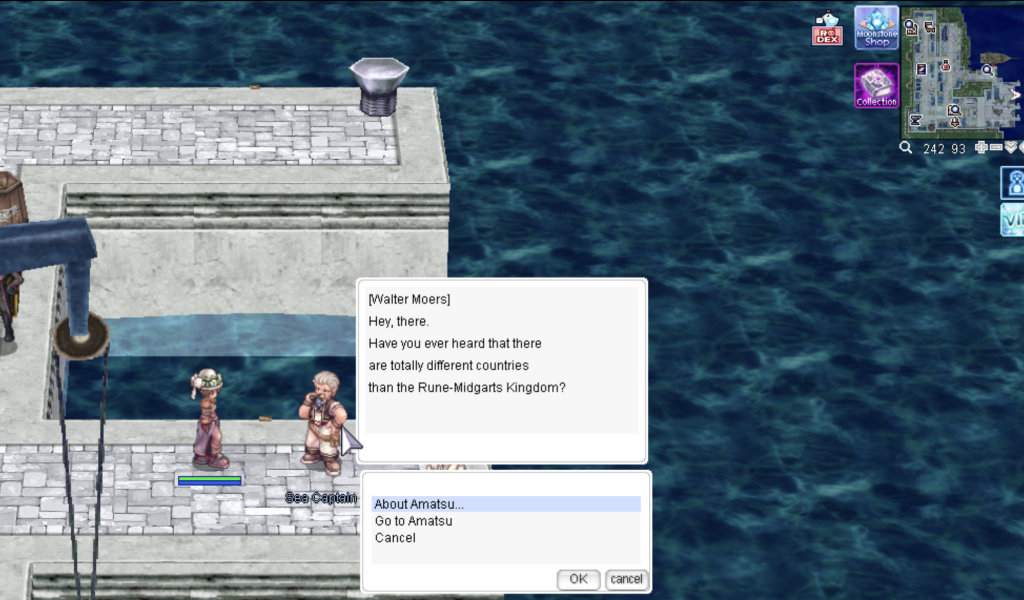 Travel to Albertaโs bottom-right area at (246, 74). > Speak with NPC Sea Captain> Go to Amatsu