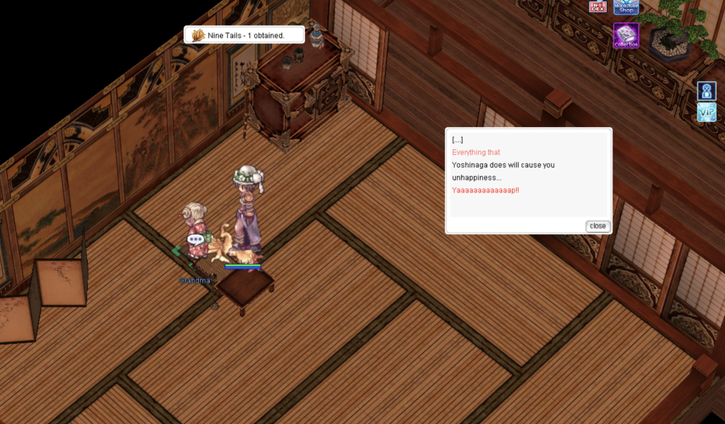 Then, return to talk to the elderly lady, Ishidaโs mother. After the conversation, she will kick you out through the back of the house again. Keep coming back and talking to her repeatedly until the wolf spirit leaves her body.