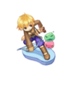 A handsome figure of a Merchant, holding a bag of zeny with a confident smile.