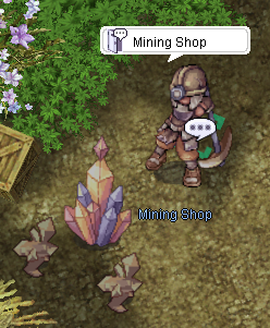 Players must equip a pickaxe at the Mining Shop before they can begin mining.