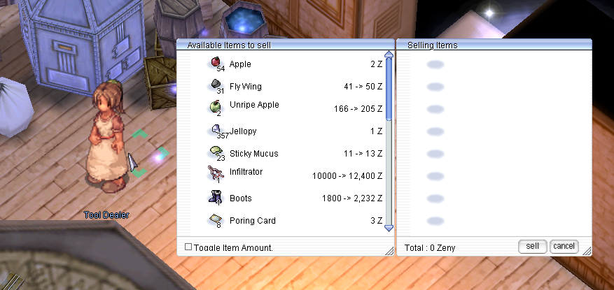* Items valued **below 1,000 Zeny** will have their selling price divided by **3**.