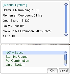 Players can enable or disable Stamina consumption through this function. When selecting this option, the menu will display the remaining Stamina and indicate whether the system is currently enabled or disabled.