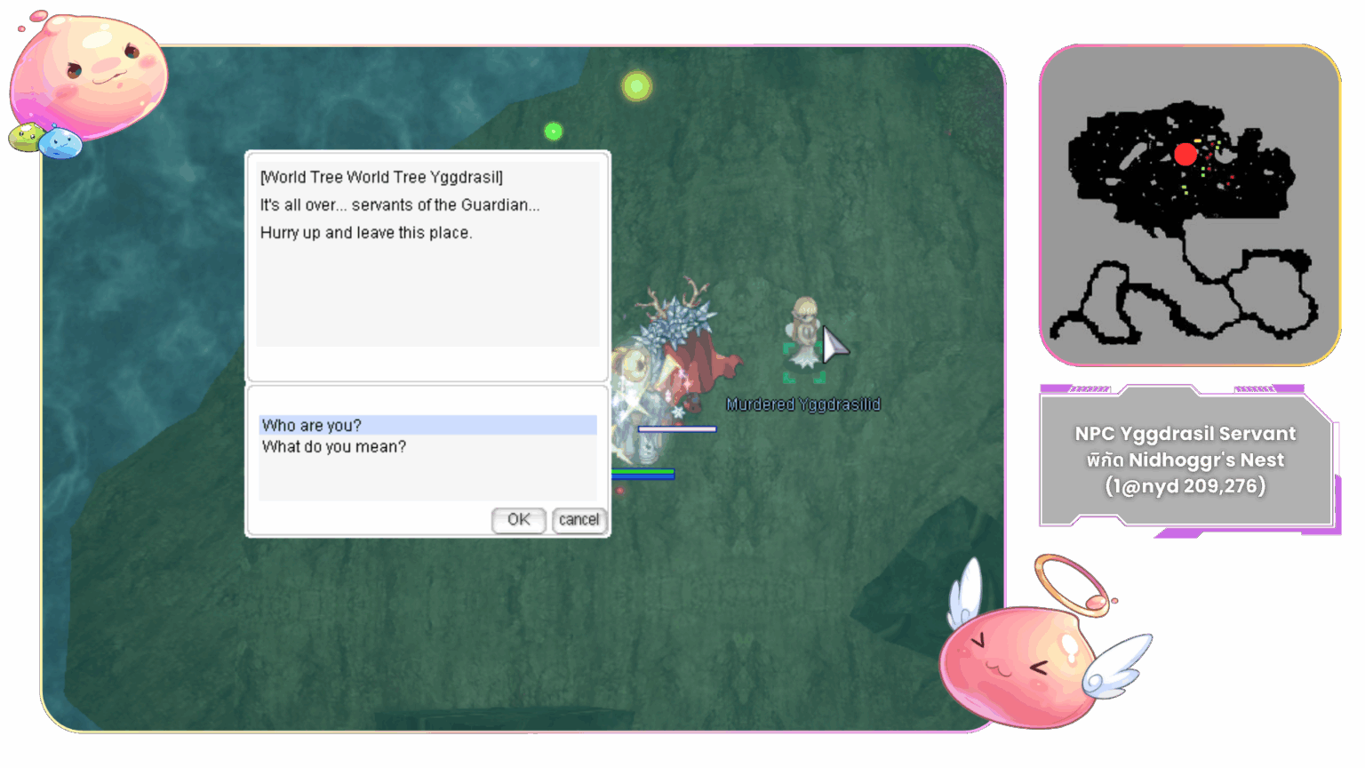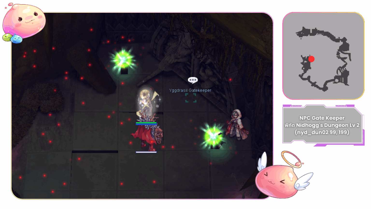 ให้ หัวหน้าปาร์ตี้ พูดคุยกับ Yggdrasil Gatekeeper ที่พิกัด (nyd_dun02 99, 199)