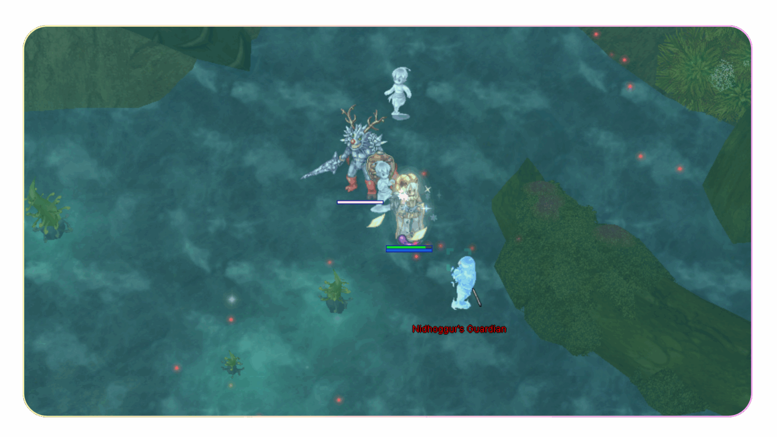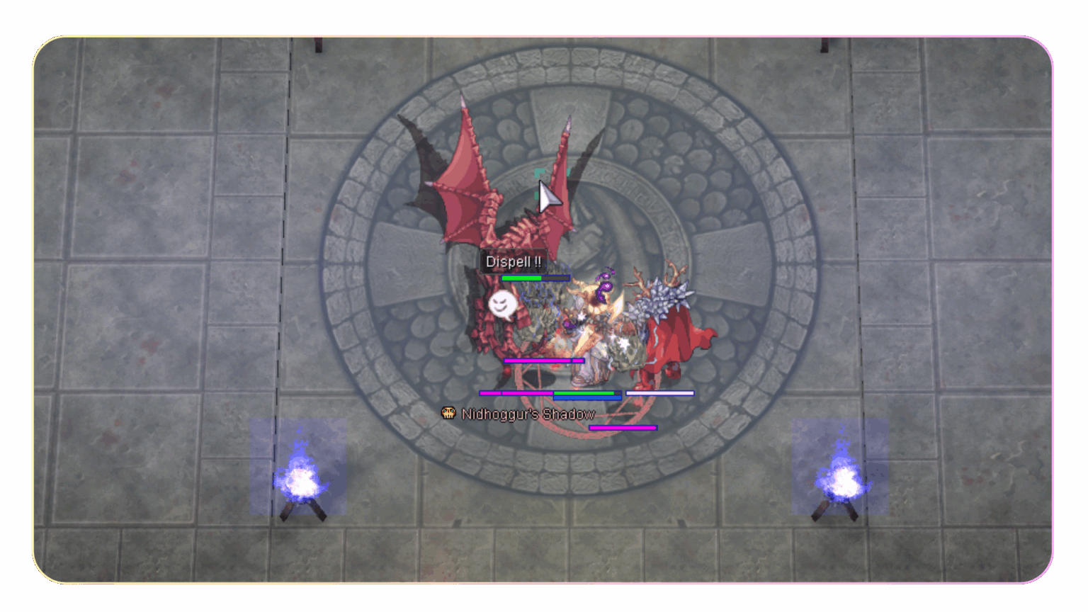 เมื่อหัวหน้าปาร์ตีก้าวไปข้างหน้า นักผจญภัยทั้งหมดจะถูกวาร์ปเข้าสู่ ห้องบอส และ Nidhoggur’s Shadow จะปรากฏตัวที่ใจกลางห้อง