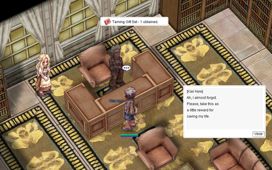 11. Kiel Hyre's Cottage ตั้งอยู่หนึ่งแผนที่ทางเหนือของ Academy ไปทางทิศตะวันตก (yuno\_fild02 93, 207) เข้าไปหาผู้คุมแล้วบอกว่า “ฉันมีนัดกับ Kiel Hyre” และยืนยันด้วยคำว่า “ใช่” เขาจะแจ้งให้คุณทราบว่า Kiel Hyre ออกไปแล้ว