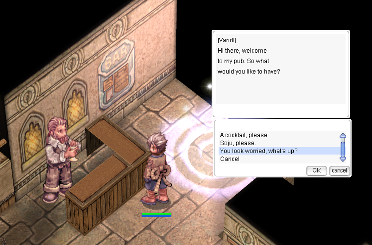 5. ไปที่ Juno Bar อีกครั้งและบอกบาร์เทนเดอร์ว่า "ฉันต้องการไวน์เพิ่ม..." เพื่อรับ Culinary Wine ![7487.png](https://irowiki.org/images/db/item/7487.png) และ 1,000 zeny สำหรับความพยายามของคุณ