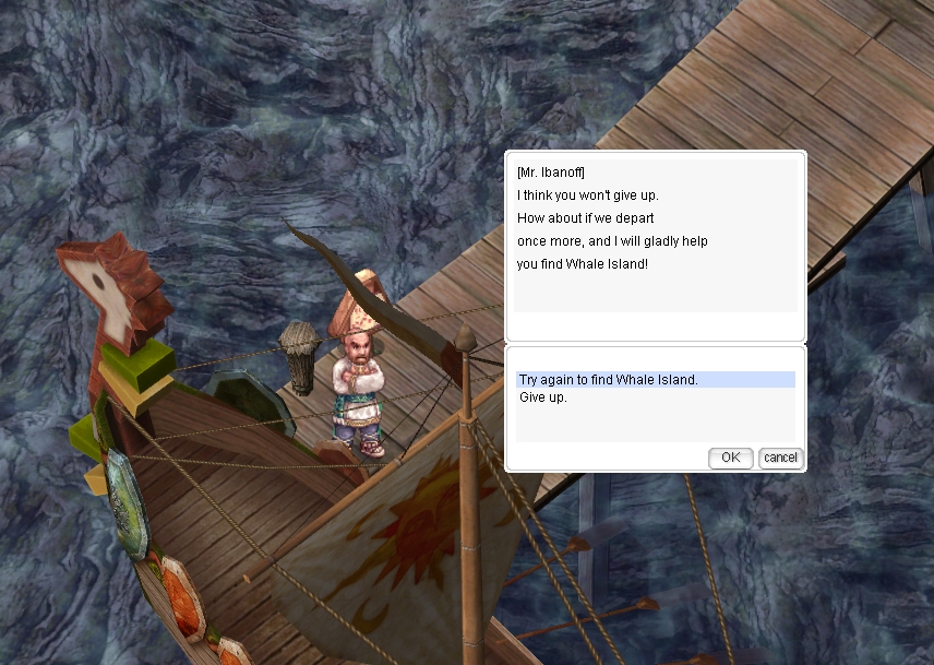 กลับไปหามิส Mr. Ibanoff เพื่อออกเรือไปยัง Moving Island กำจัดมอนสเตอร์บนเรืออีกครั้ง หลังจากทุบตีพวกเขาแล้ว ให้สนทนากับ Mr. Ibanoff อีกครั้ง