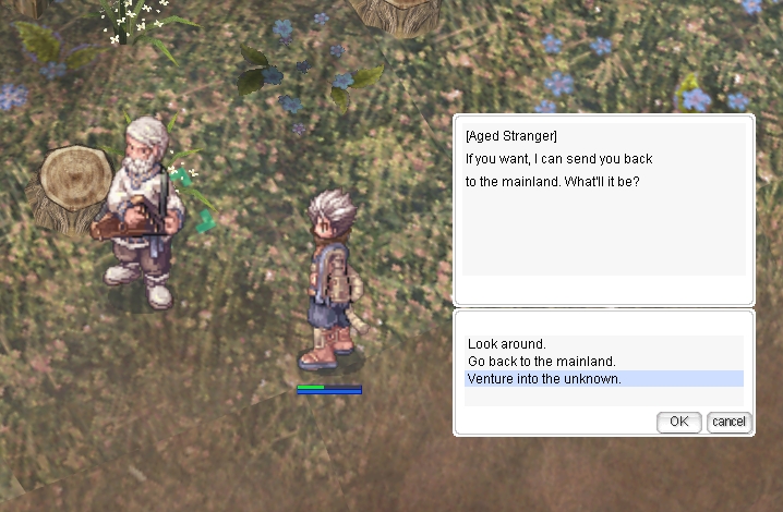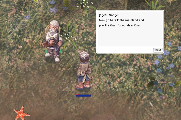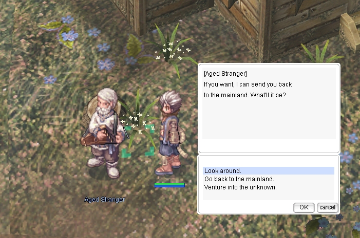เมื่อคุณไปถึงเกาะ While ให้ค้นหา Aged Stranger ที่ (mosk_fild01 87, 105) คุยกับเขาสามครั้งเพื่อกลับไปที่ Moscovia