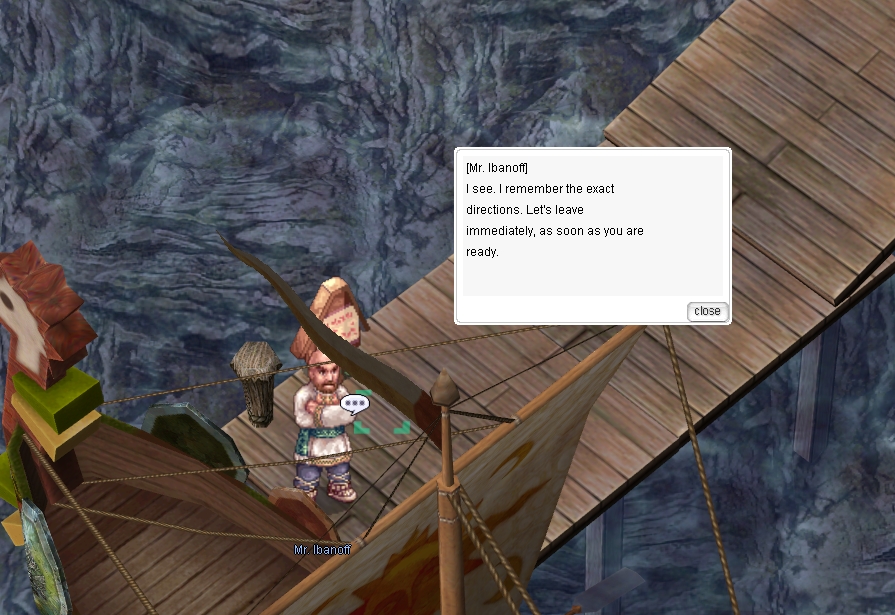 ควบคุมทิศทางของเรือตามคำสั่งของ Mr. Ibanoff และพูดคุยกับ Mr. Ibanoff ซ้ำแล้วซ้ำอีกเพื่อรับคำแนะนำใหม่ คลิกพวงมาลัยและกำหนดเส้นทางตามที่ Mr. Ibanoff บอก ระวังมอนสเตอร์ที่อาจออกมา โดยคุณจะต้องเอาชนะพวกมันเพื่อให้เรือแล่นต่อไปได้