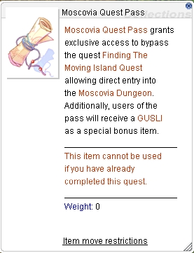 เมื่อใช้ Moscovia Quest Pass คุณจะได้รับไอเทม "Gusli" โดยอัตโนมัติ