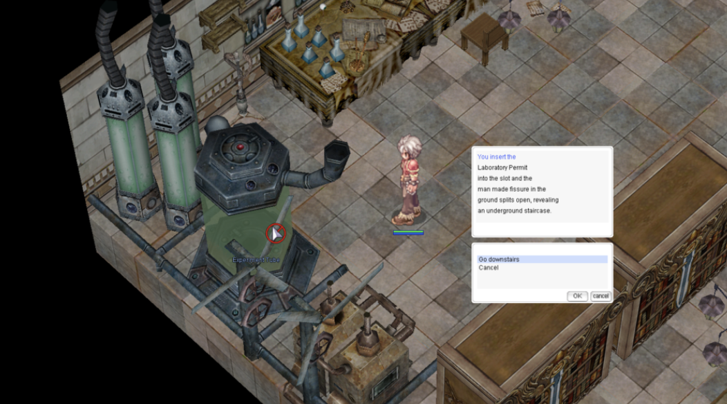 • ไปที่ หลอดทดลอง (อีกครั้ง): ใช้ Laboratory Permit เพื่อลงบันได