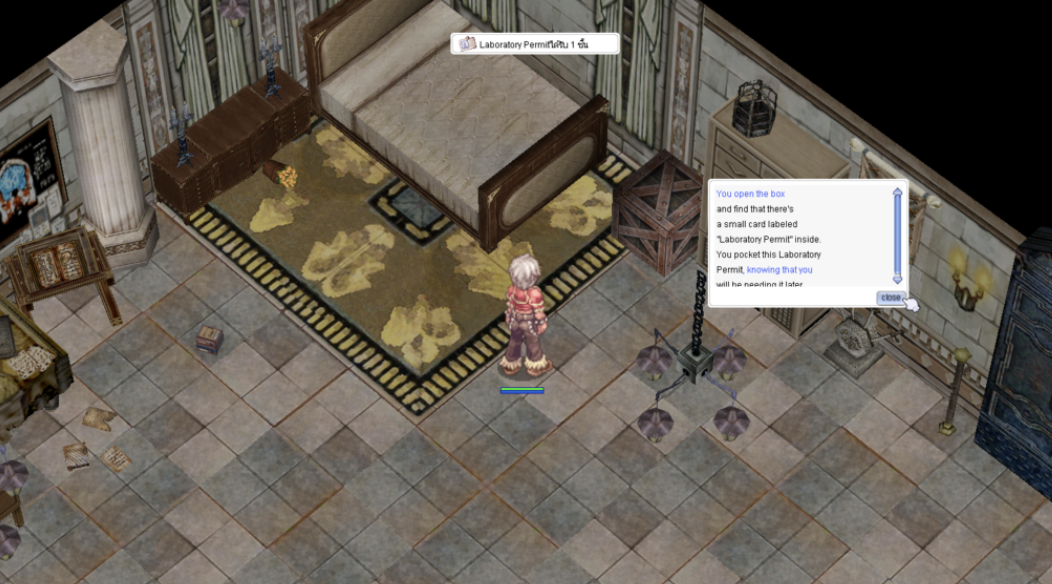 • กดที่ กล่อง (อีกครั้ง): รับ Laboratory Permit 1 ชิ้น