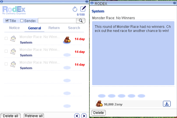 4. ในทุกรอบ จำนวนเงินรางวัลทั้งหมดจะถูกลดลง 10% ของจำนวนเงินเดิมพันรวมทั้งหมดในรอบนั้น ตัวอย่างเช่น หากจำนวนเงินเดิมพันรวมทั้งหมดคือ 100,000 zeny 10% จะถูกหักลง ซึ่งทิ้งไว้เหลือ 90,000 zeny สำหรับผู้ที่เดาถูกต้อง