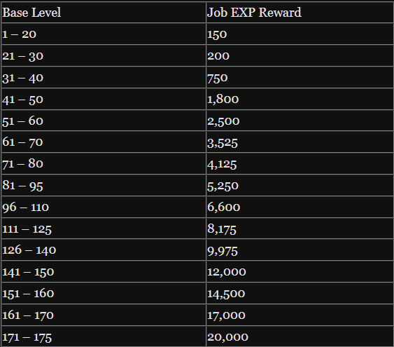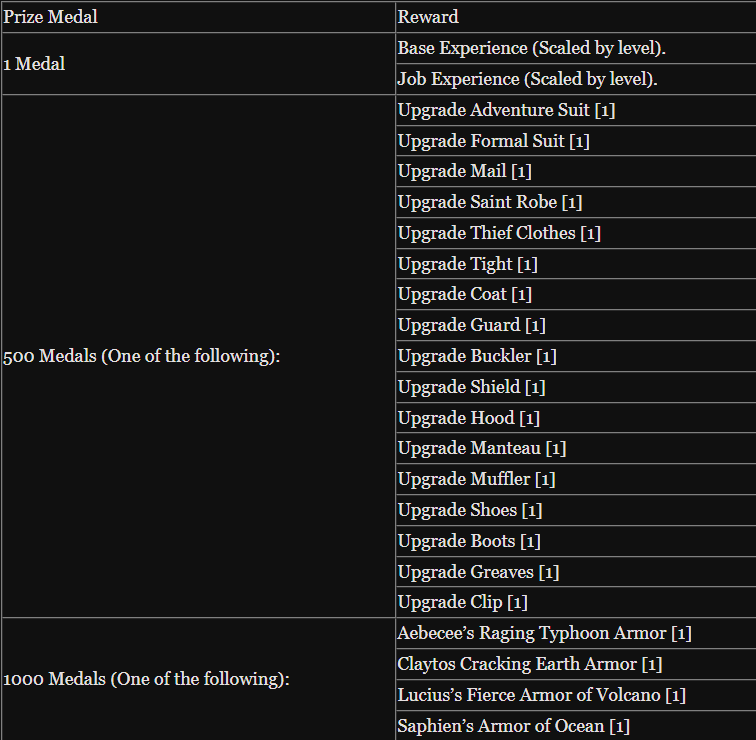 หนึ่งในรางวัลที่ได้จากการแลกเหรียญรางวัลกับ Ei’felle ที่ ein\_in0185207 ในเมือง Einbroch คือ การเลือก Experience หรือ Job Experience จำนวนที่คุณจะได้รับสำหรับแต่ละเหรียญรางวัลตามรายการดังนี้