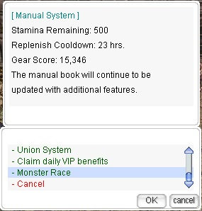 2. เมื่อการแข่งขันเริ่มต้น คุณจะมีเวลา 1 นาทีเพื่อเลือกมอนสเตอร์และวางเดิมพันในการแข่ง (จำนวนเงิน zeny ขึ้นอยู่กับสนาม)\