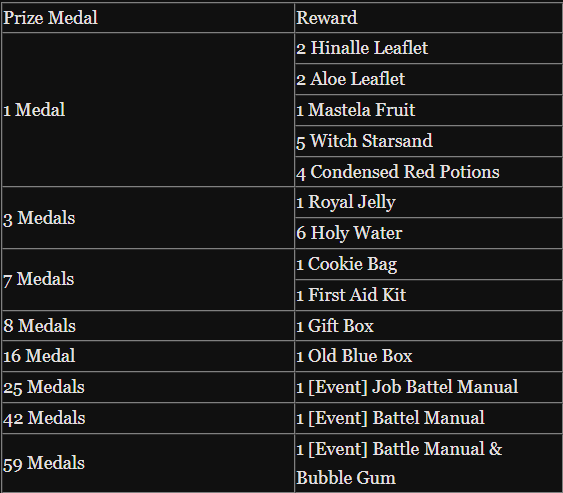 Prize Medals จะได้รับเมื่อชนะในมินิเกมต่าง ๆ ในเมือง Hugel