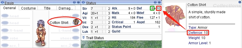 Hit rate: ค่าความแม่นยำโจมตี ซึ่งคำนวณเป็น 175 + BaseLv + DEX + Floor(LUK ÷ 3) + Bonus