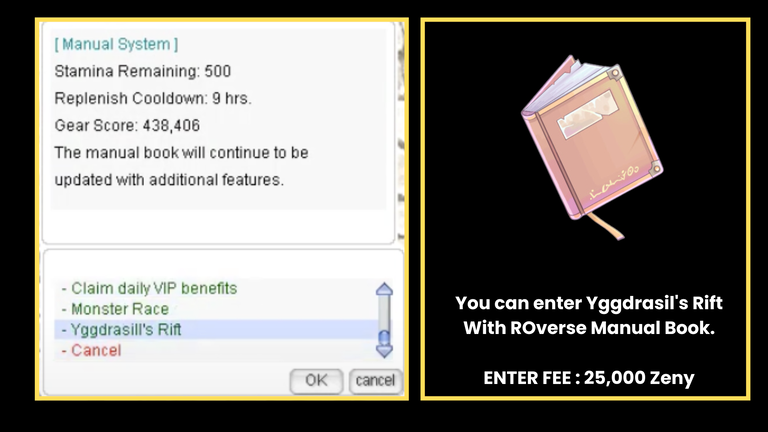 * ผู้เล่นสามารถเข้าสู่รอยแยกแห่งอึกก์ดราซิลล์ได้ผ่าน คู่มือ ROverse โดยจะมีค่าธรรมเนียมในการเข้า 25,000 เซนนี