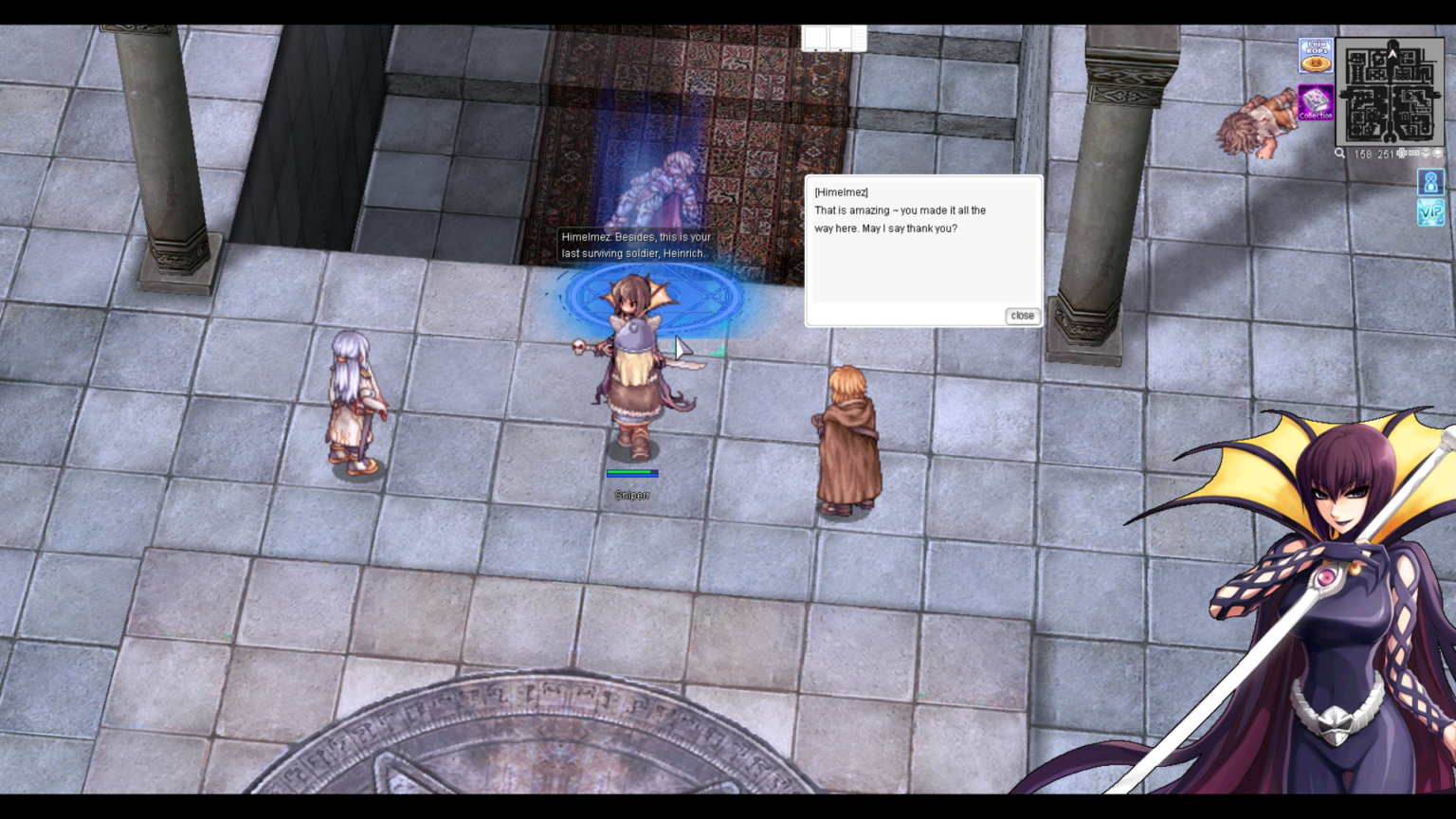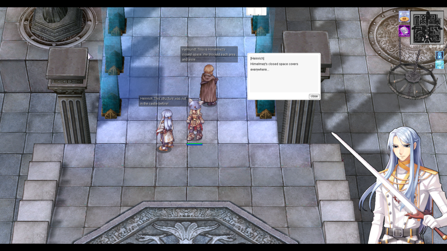 หลังจากนั้นเดินขึ้นไปอีกเล็กน้อย จะเกิดบทสนทนาระหว่าง Heinrich, Vramundt และ Himelmez เพื่อปูเรื่องราวของดันเจี้ยน
