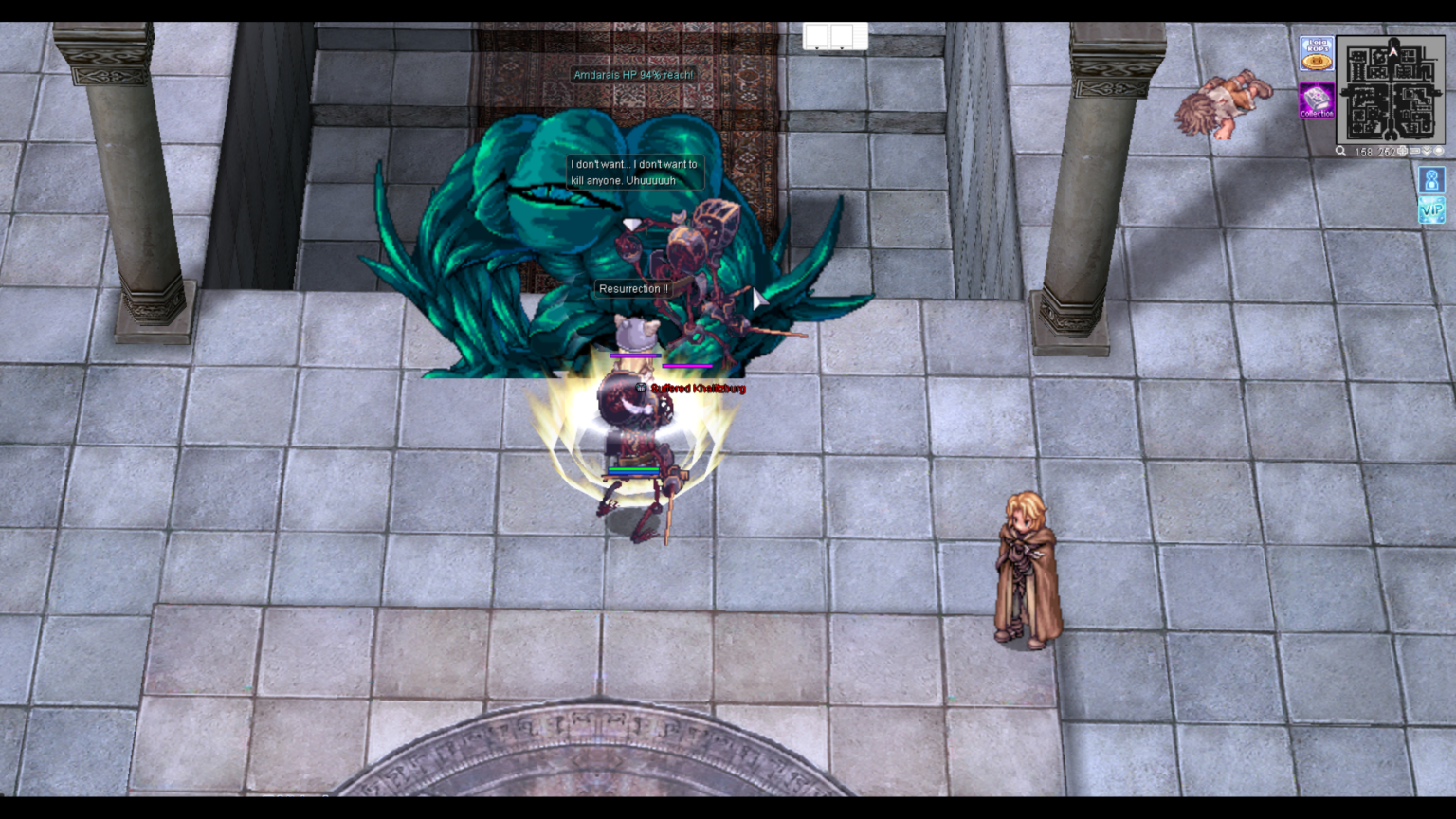 เริ่มจากการใช้วาปไปยัง ฝั่งซ้ายของแผนที่ กำจัดมอนสเตอร์ทั้งหมดภายในพื้นที่จนกว่าจะมีข้อความระบบแจ้งเตือน จากนั้นให้ตามหา NPC Altar Boy Domun และพูดคุยกับเขาเพื่อดำเนินขั้นตอนถัดไป