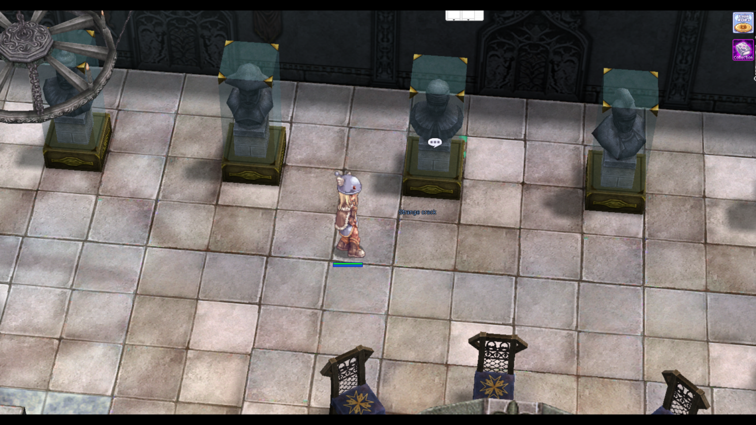 ให้ทำการสำรวจ น้ำพุ ภายในห้อง ระบบจะวาปผู้เล่นไปยังห้องเก็บสมบัติ จากนั้นสามารถสนทนากับ แท่นหิน เพื่อสุ่มรับไอเท็มพิเศษเพิ่มเติมได้