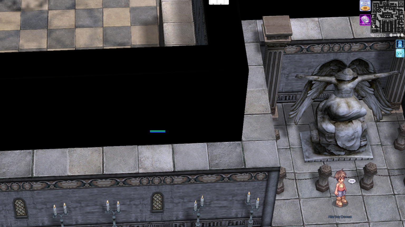 ให้เดินทางไปยังแผนที่ Glast Heim พิกัด glast_01 (212, 273) จากนั้นพูดคุยกับ NPC Dark Magician