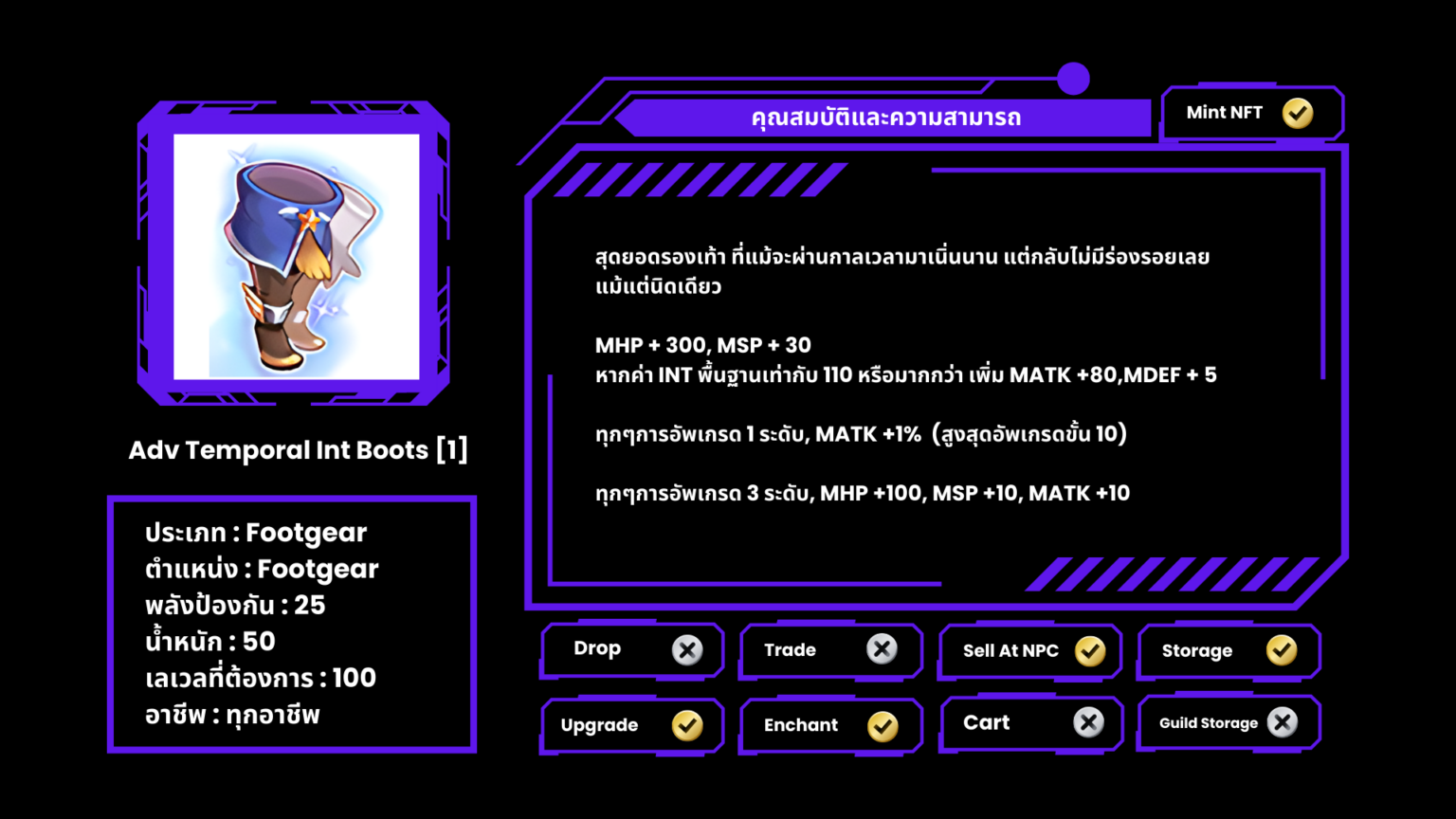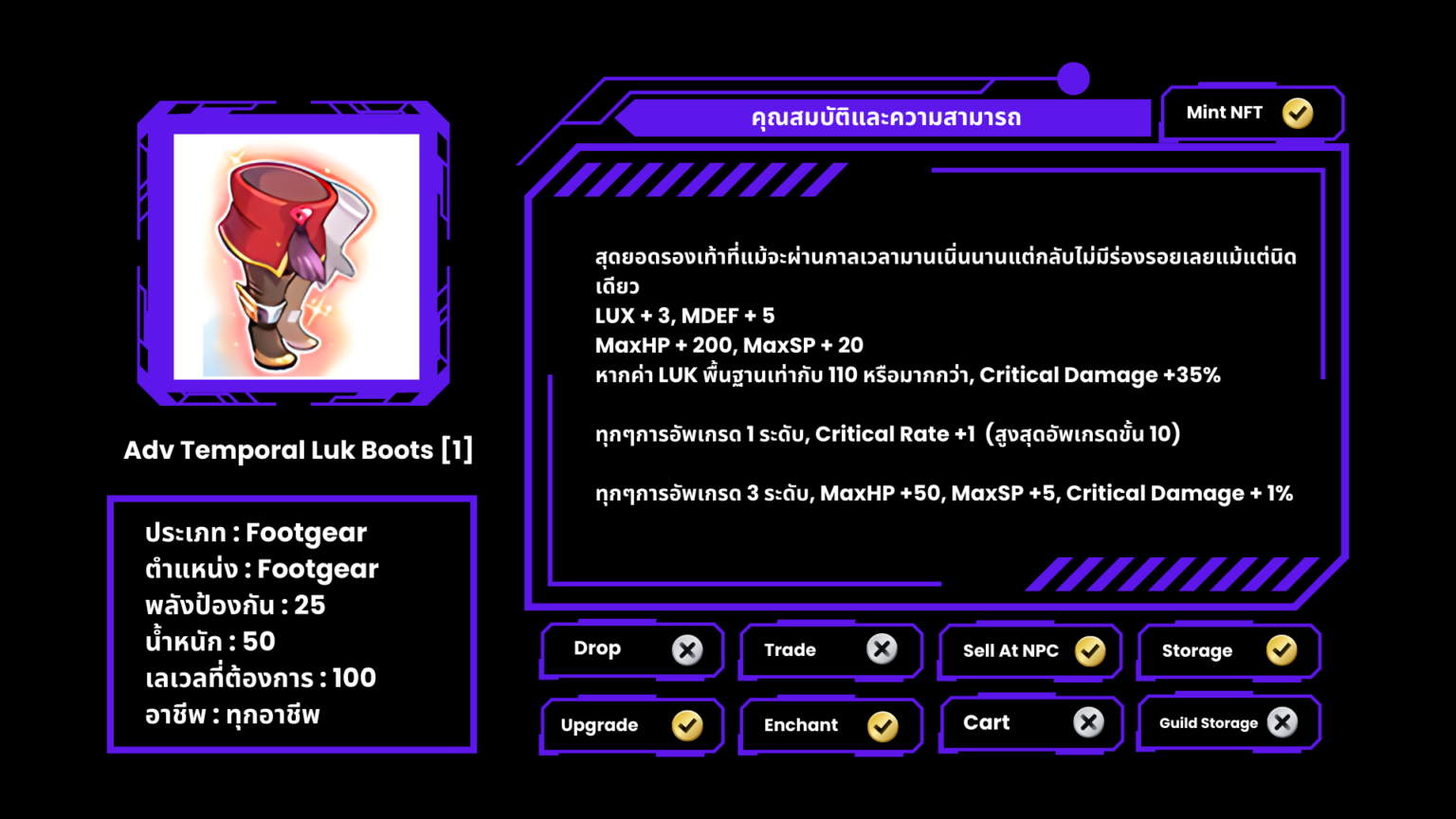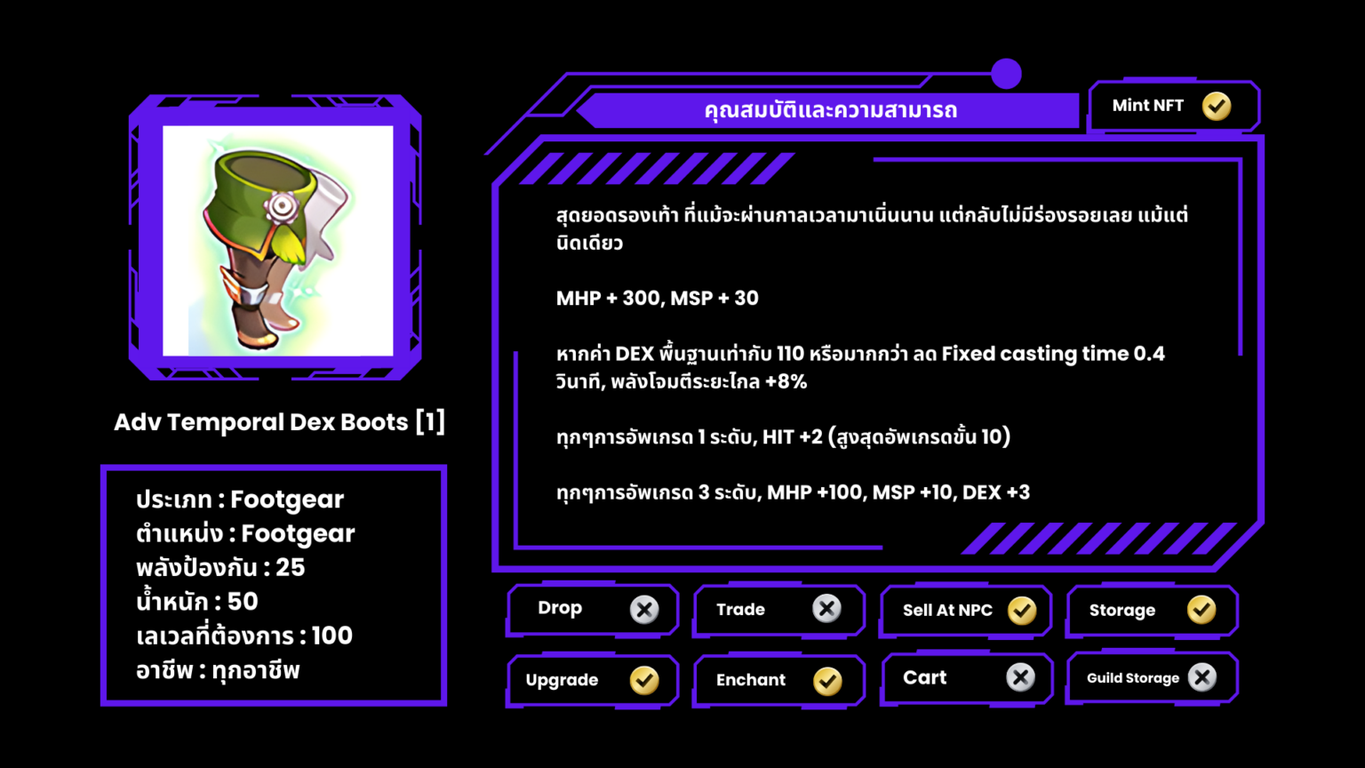 Temporal Stat Boots [1] ที่มีออฟชั่น ( Stone ) จะไม่สามารถอัพเกรดได้