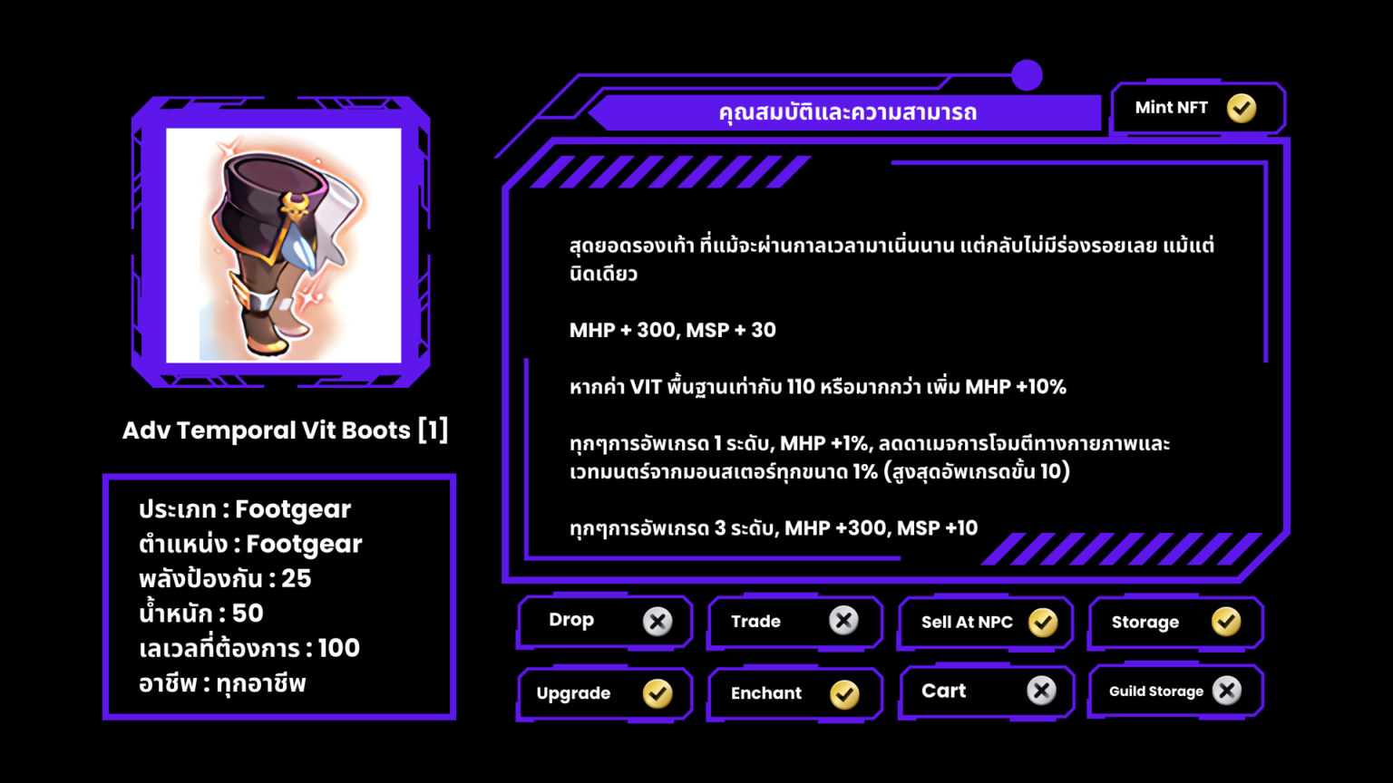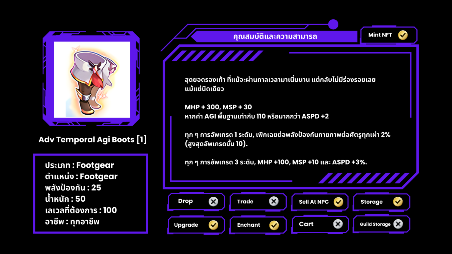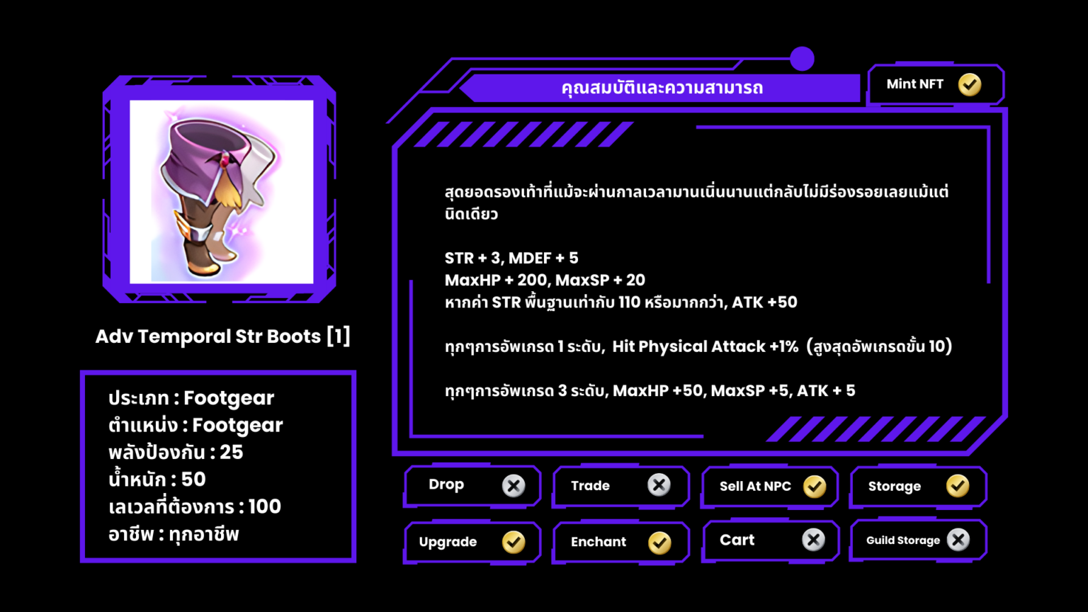 Temporal Stat Boots [1] ที่มีออฟชั่น ( Stone ) จะไม่สามารถอัพเกรดได้