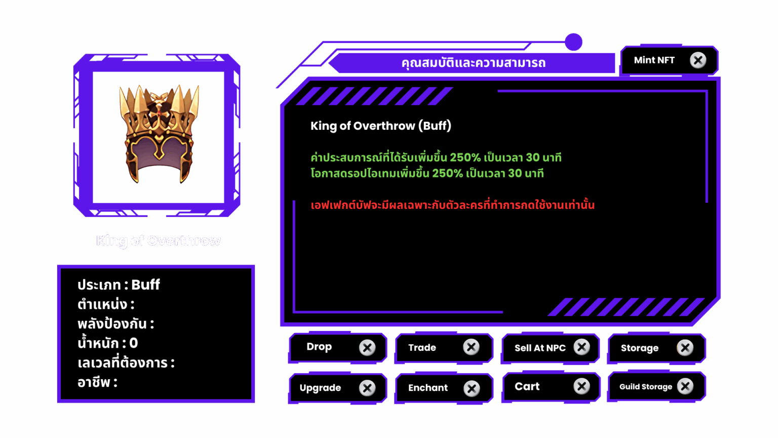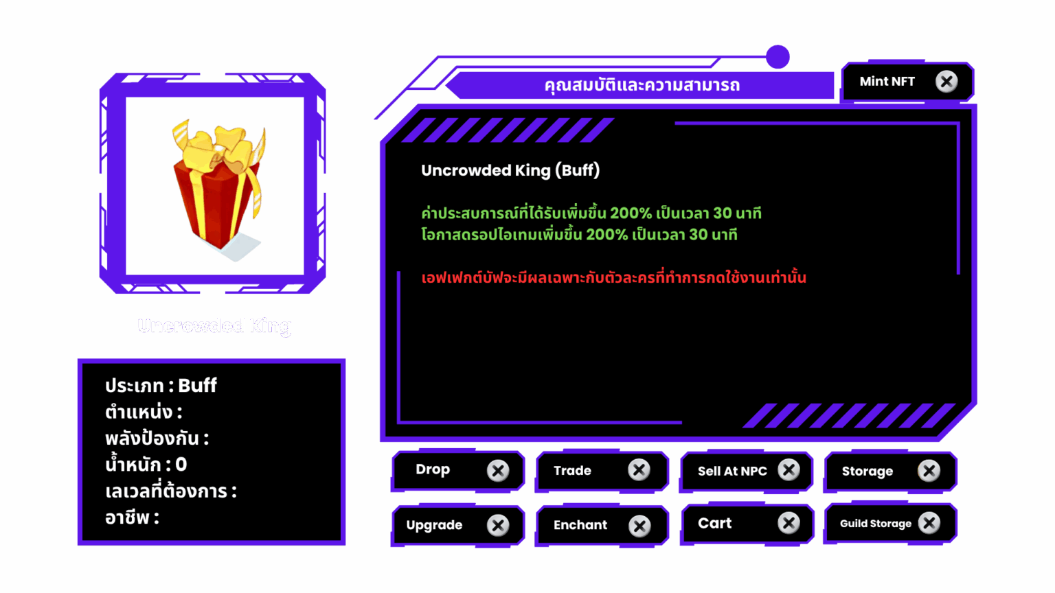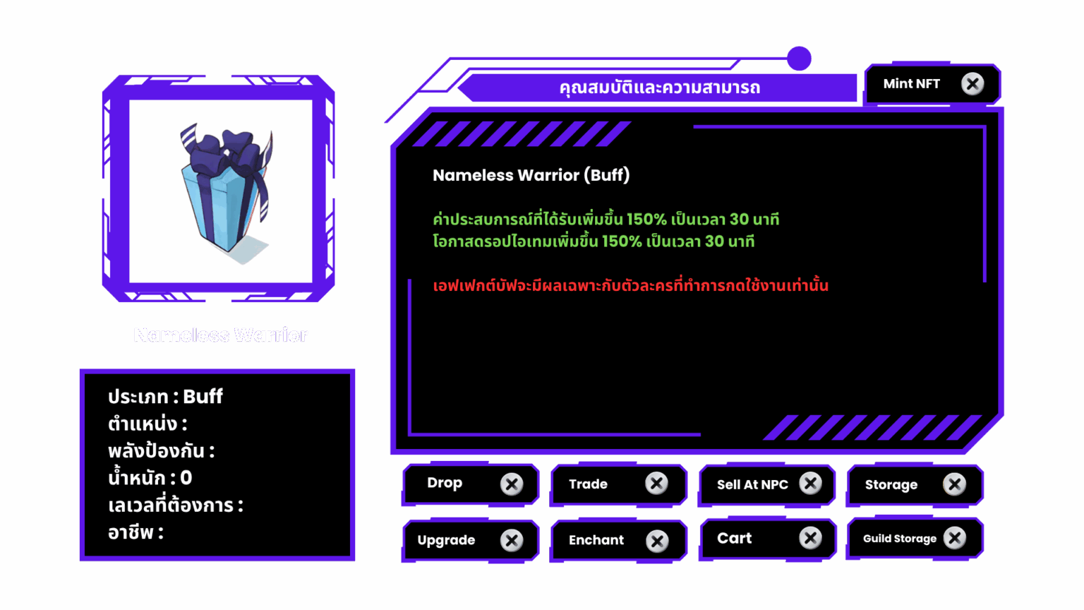 โดยบัฟดังกล่าวจะเป็นบัฟส่วนบุคคล ที่มีระยะเวลา 30 วินาที\