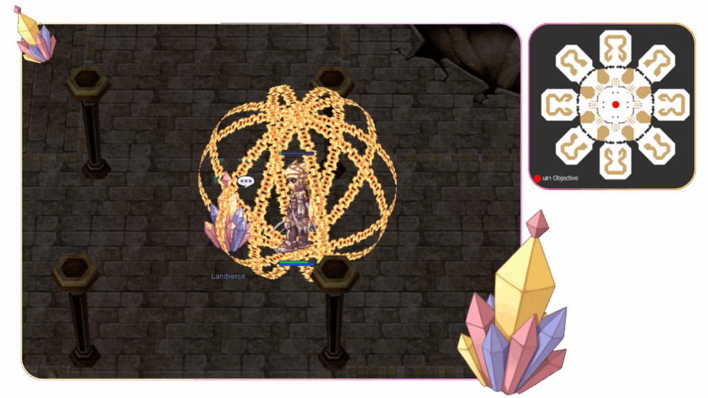 * ผู้เล่นจะต้องกดเสาเพื่อทำการ ร่ายแบบ Fix Cast 10 วินาที (สามารถถูกขัดขวางได้)