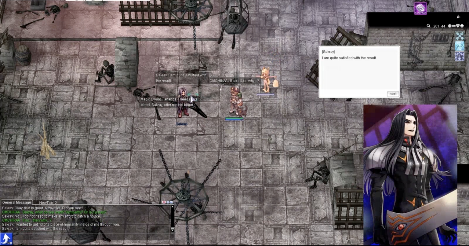 พูดคุยกับ Sakray ที่ (196, 44) ซึ่งตอนนี้ได้เปลี่ยนไปแล้ว โดยได้รับพลังใหม่จากวิญญาณ Thanatos