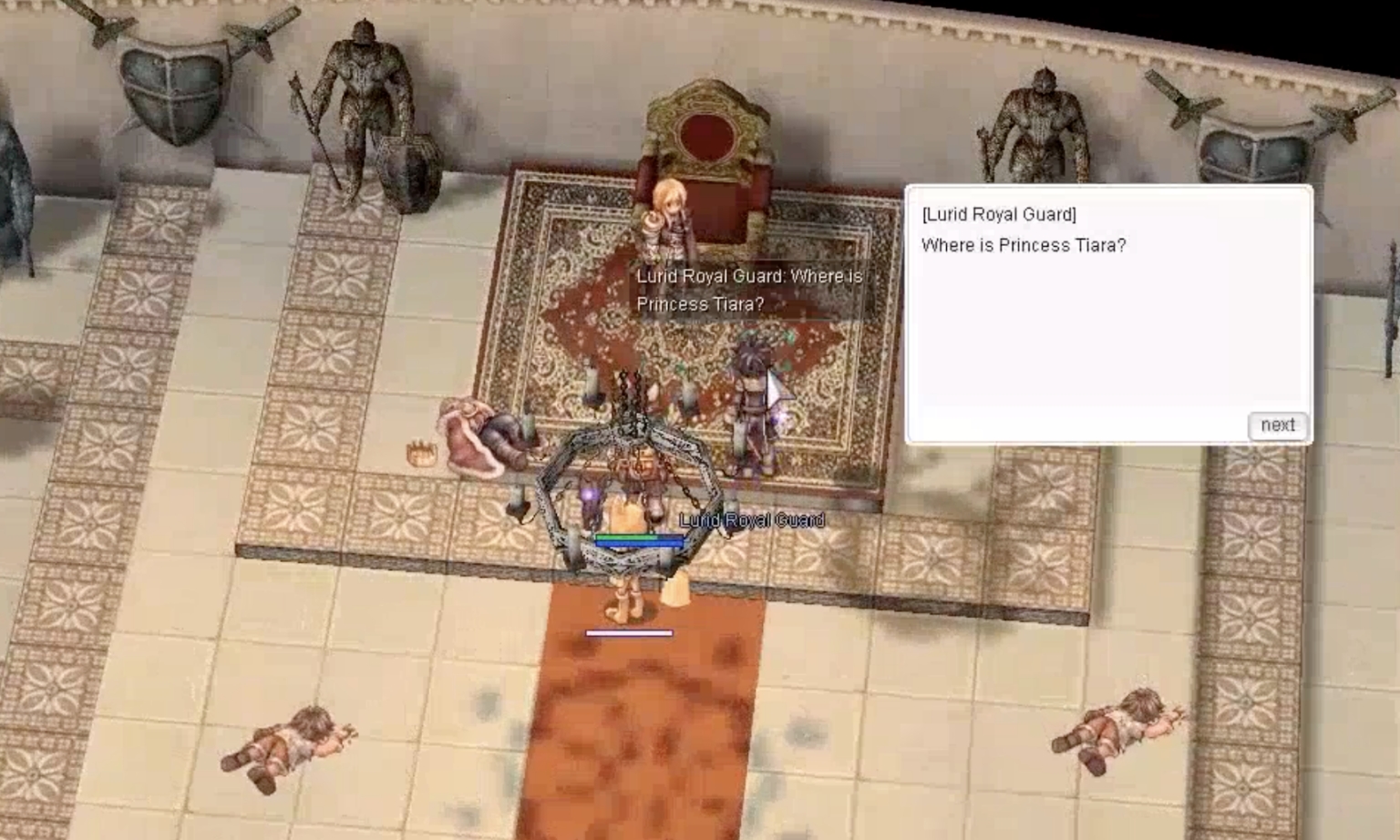 พูดคุยกับกษัตริย์เพื่อเริ่มต้น คุณจะสังเกตเห็นว่า Lurid Royal Guard ได้รับมอบหมายให้เป็นผู้คุ้มกันของ Princess Tiara สำหรับการแต่งงานกับเจ้าชายที่กำลังจะมาถึง