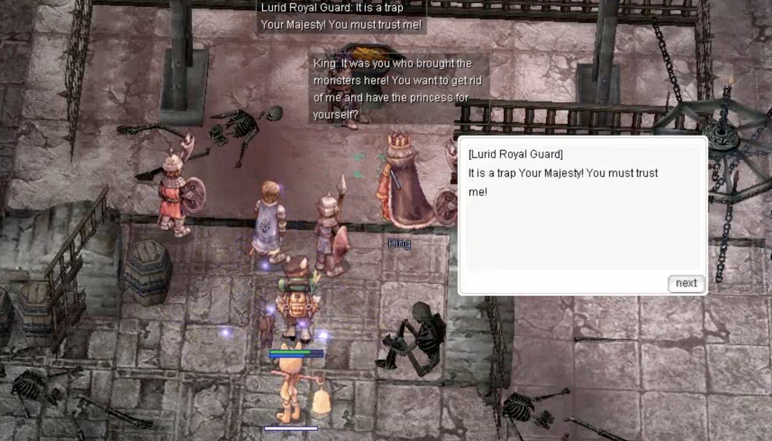 กำจัดมอนสเตอร์ในห้องให้หมดเมื่อคุณกำจัดมอนเตอร์มากพอแล้ว คุณจะเห็นกษัตริย์และเหล่าทหารของเขาเสียชีวิตอยู่ภายในห้อง