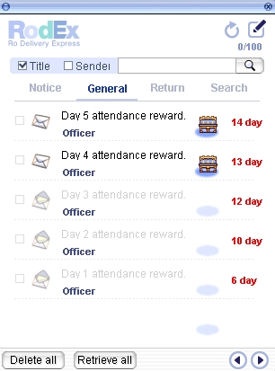 ตรวจสอบจดหมาย: มองหาจดหมายใหม่ที่มีไอเทมที่คุณได้รับจากหน้าต่างล็อกอินประจำวัน