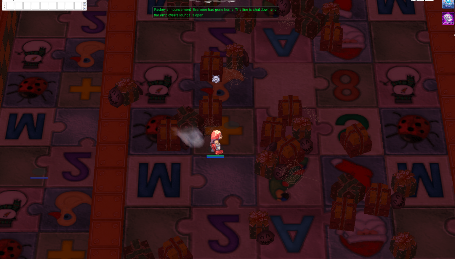 2. ในห้องนี้มีมอนสเตอร์จำนวนมาก แต่ต้องกำจัด Antonio เท่านั้น หลังจากกำจัด Antonio จะมีประกาศและมอนสเตอร์ที่เหลือจะหายไป หมายเหตุ: Antonio อาจปรากฏในห้องที่มีบทสนทนากับ Santa ด้วย ควรตรวจสอบก่อนเข้าสู่จุดวาร์ปทางซ้าย