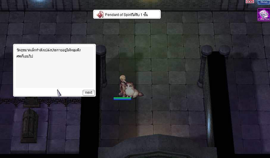 หัวหน้าปาร์ตี้จะต้องตามหา [] Pendant of Spirit 1 ea โดยสามารถหาได้จากการคุยกับ NPC Falling Grave ตามจุดสีเหลืองในแผนที่ซึ่งจะสุ่มเกิด