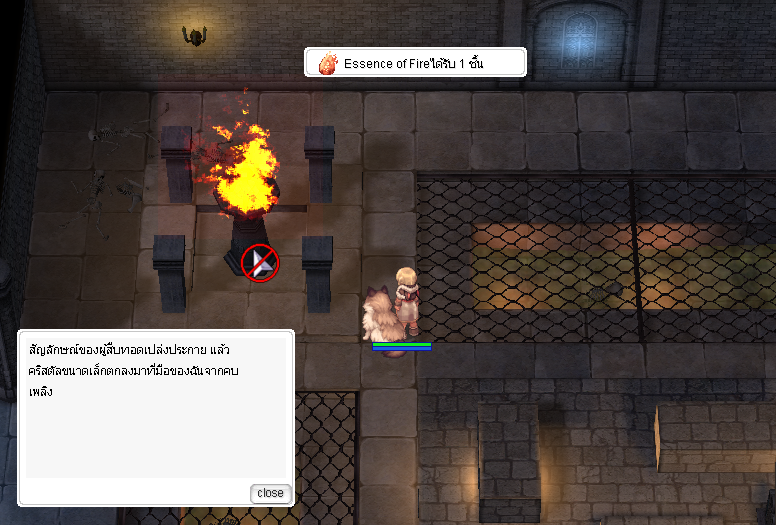 ให้หัวหน้าปาร์ตี้เก็บ []Essence of Fire จาก Bobbing Torch ตามจุดสีส้มในแมพ จนได้ครบ 10 ea (ได้จุดละ 1 ea)