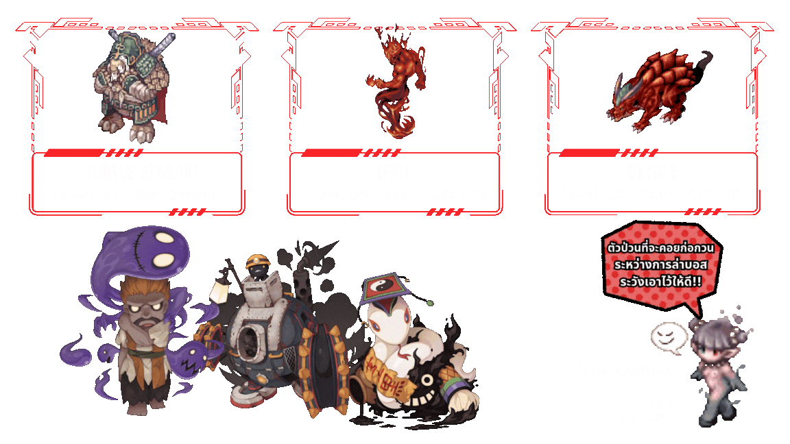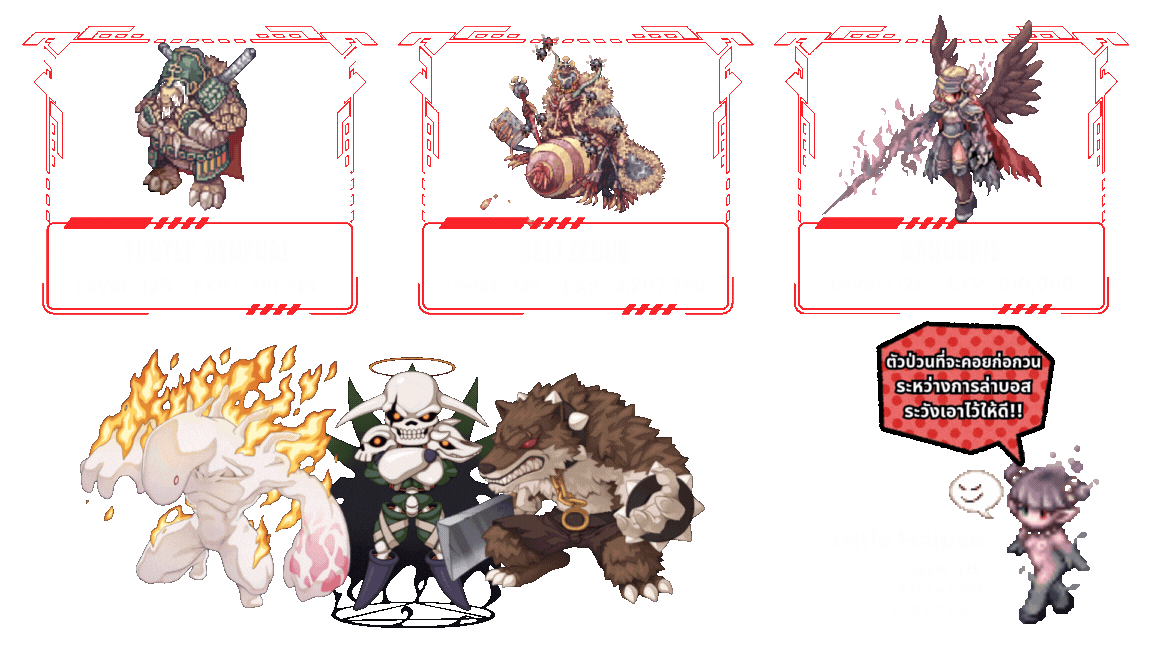 ภายในแผนที่จะสุ่มค่า RES และ MRES 200 ให้แก่บอสมอนสเตอร์ โอกาสที่บอสมอนสเตอร์จะได้รับค่า RES MRES อยู่ที่ 37% หากบอสมอนสเตอร์ที่ได้รับค่า RES = ลดดาเมจทางกายภาพประมาณ 27% MRES = ลดดาเมจทางเวทย์มนตร์ประมาณ 27%