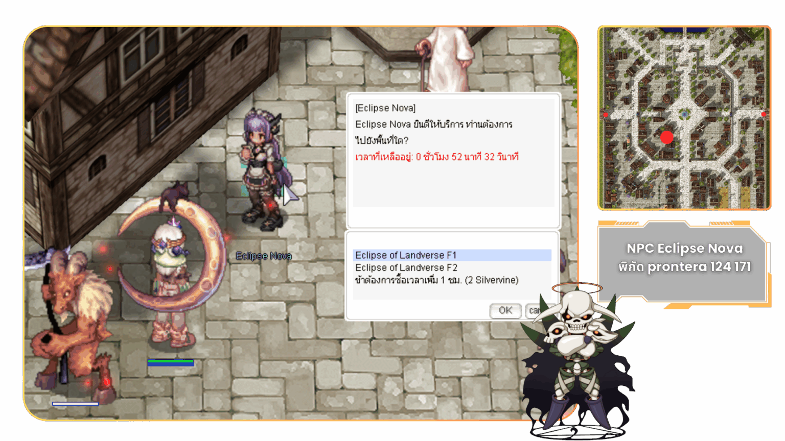 นักผจญภัยสามารถเข้าสู่แผนที่ได้ผ่านทาง NPC Eclipse Nova (พิกัด prontera 120 168)