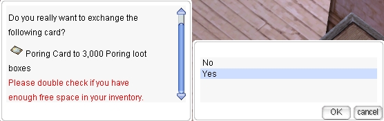ตัวอย่าง เช่น หากคุณรวบรวม Poring Card 1 ใบ คุณสามารถแลกเป็น Poring Loot Boxes 3,000 กล่อง