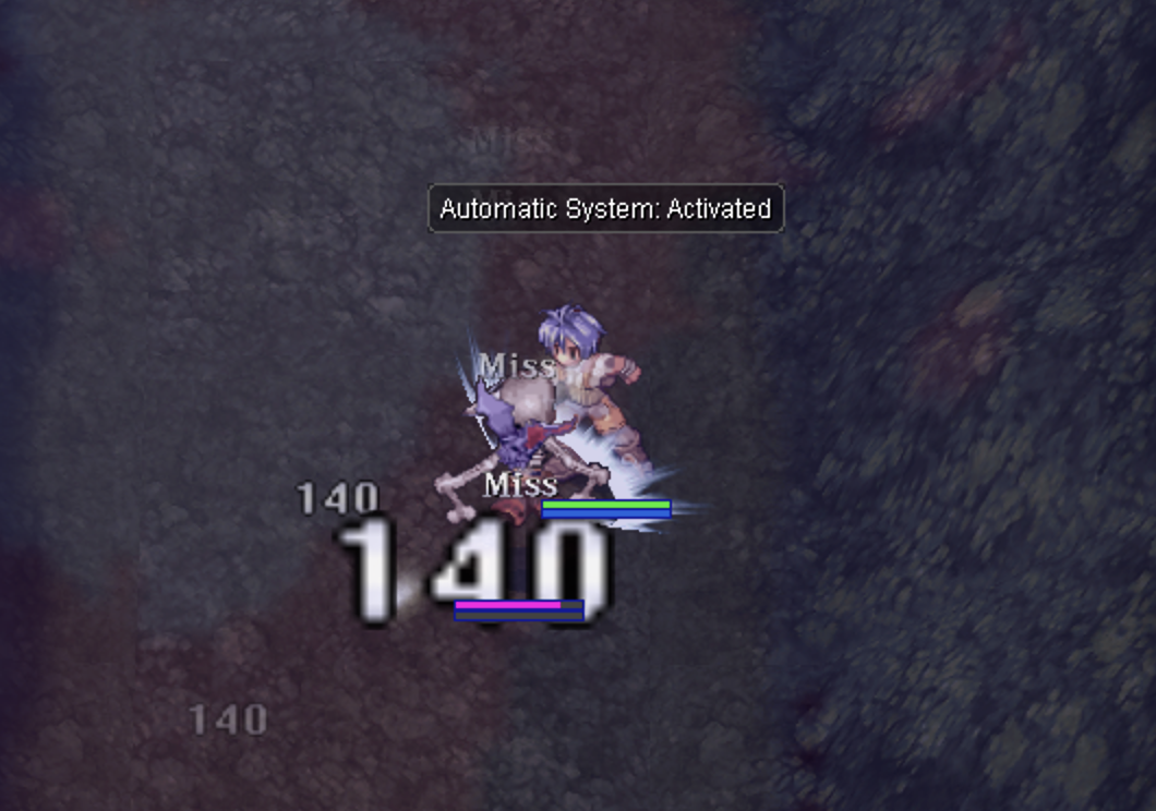 สำหรับ **Automated battle system** เมื่อผู้เล่นกดให้ตัวละครเข้าสู่โหมดนี้ ตัวละครจะเคลื่อนที่แบบสุ่มและจะโจมตีมอนสเตอร์ตัวที่ใกล้ที่สุด มีตัวเลือกในการสลับไปที่โหมด **Stay Alert** ซึ่งสามารถใช้งานได้หลังจากเปิดใช้งานโหมดระบบอัตโนมัติเท่านั้น โหมดนี้จะทำให้ตัวละครอยู่ในตำแหน่งเดิม และไม่เคลื่อนที่แบบสุ่มและมีมอนสเตอร์ที่ดุร้ายอยู่ในพื้นที่